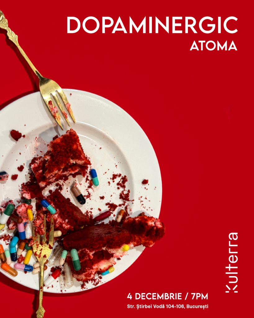 ATOMA examinează o generație care trăiește prinsă între mediul fizic și cel digital, într-o lume saturată de informație și stimulare continuă. În era în care atenția devine o resursă rară, conexiunile umane se diluează într-un flux de reacții dictate de dopamină, iar identitatea se modelează permanent sub presiunea tehnologiei. Expoziția se înscrie în direcția proiectelor anterioare ale artistei, explorând dependența ca paradox al epocii digitale. ATOMA subliniază fragilitatea echilibrului dintre dependență, control și nevoia de sens.